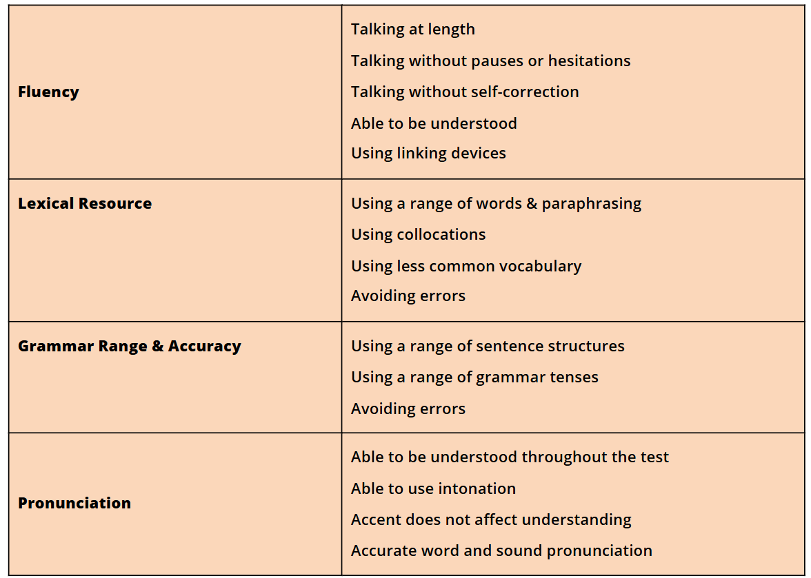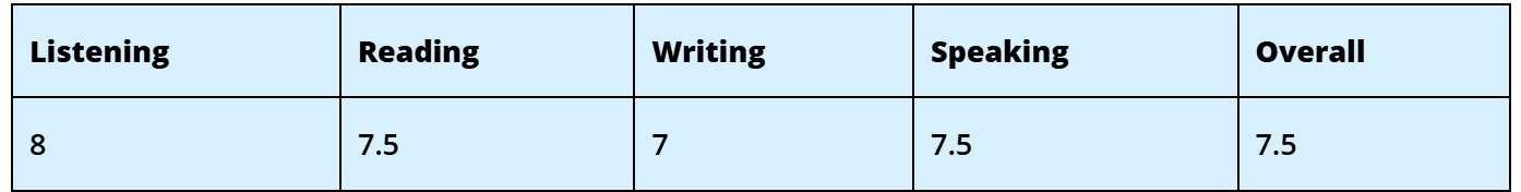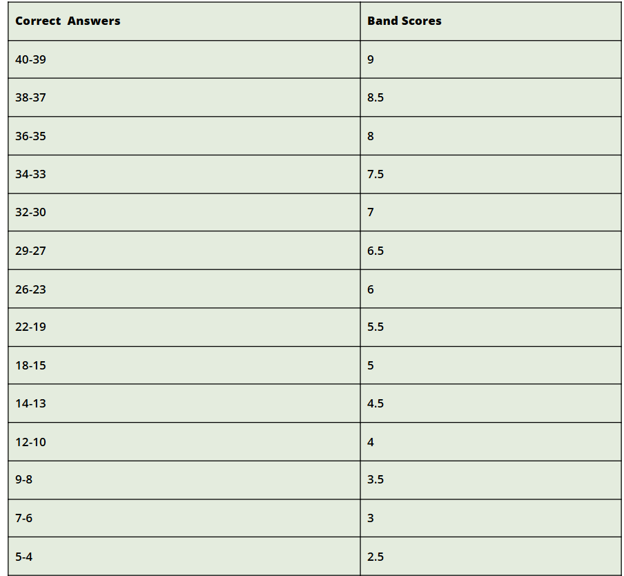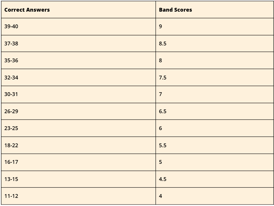 Each section is scored out of Band 9, and the overall score is the average of the four.