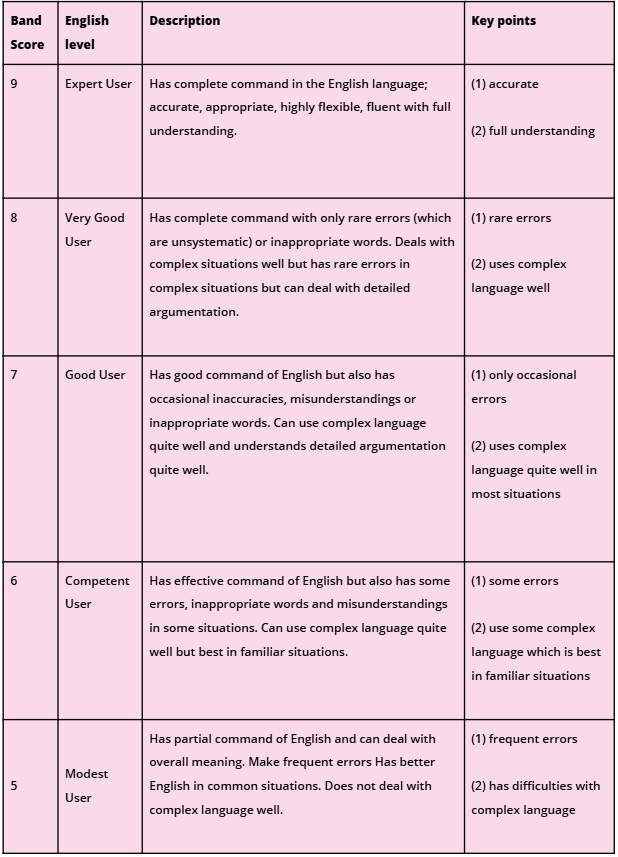 Each IELTS component—Listening, Reading, Writing, and Speaking—is graded on a band scale from 1 to 9. You’ll receive an individual score for each skill and an overall band score, which is the average of the four.